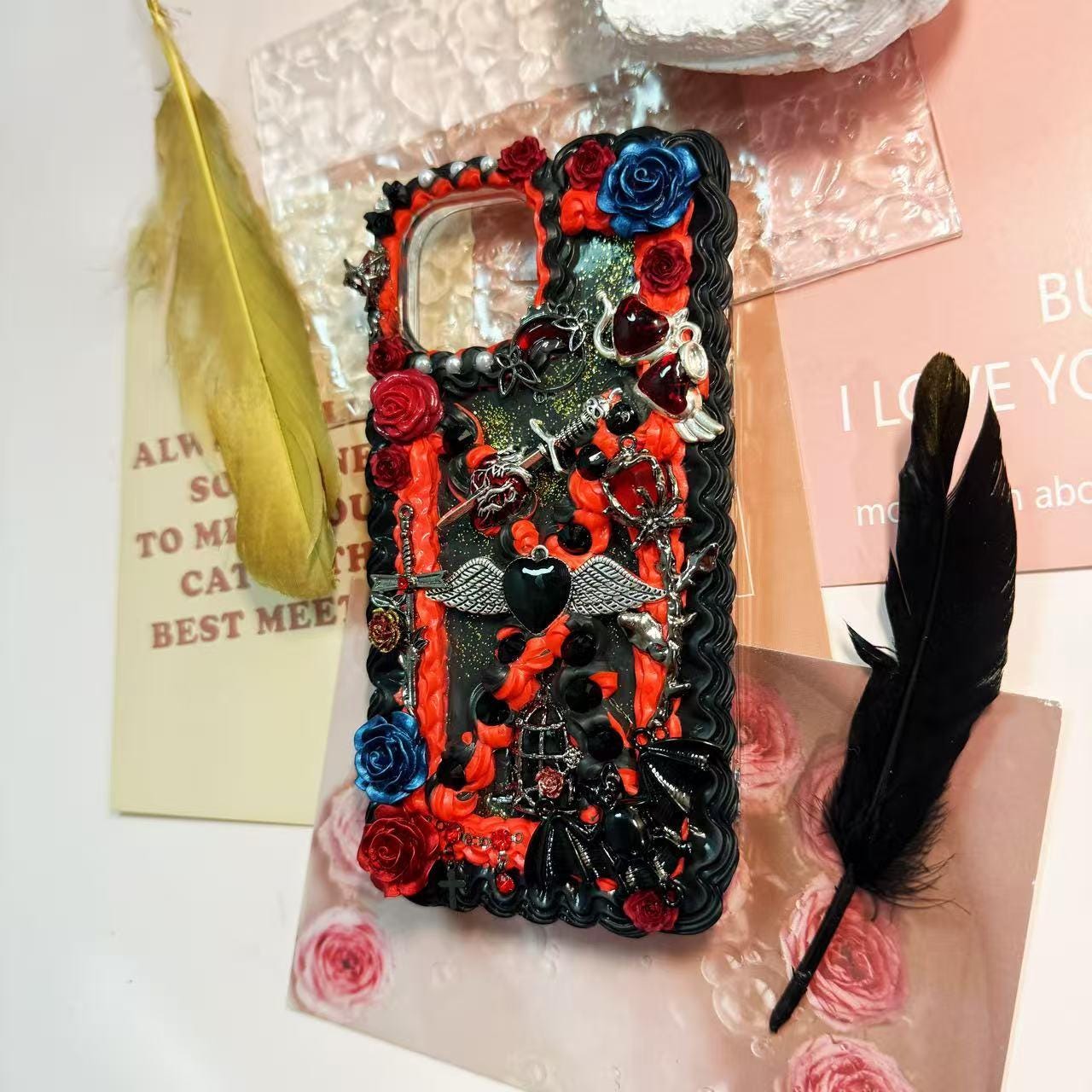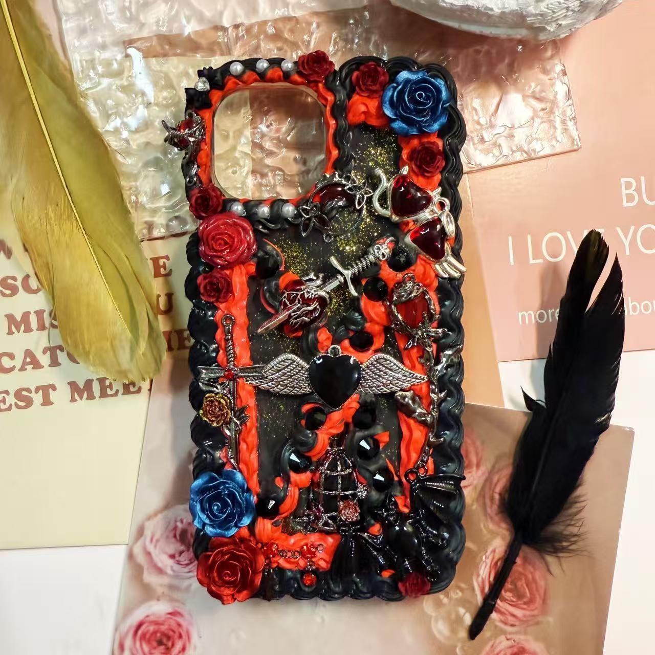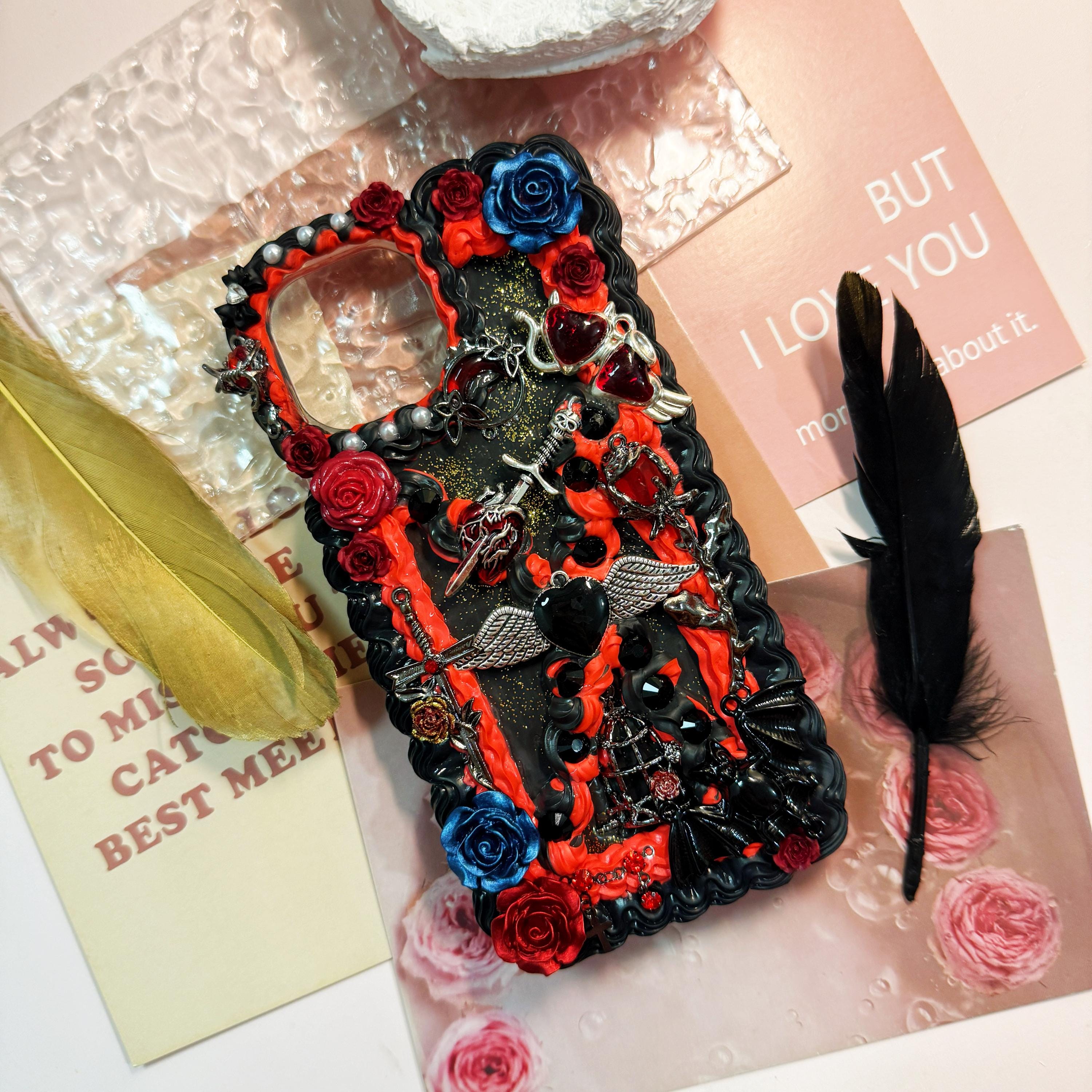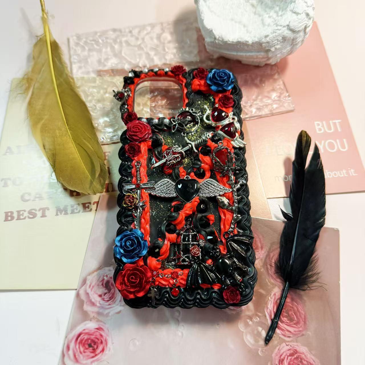 Handmade Decoden Phone Case: gothic design