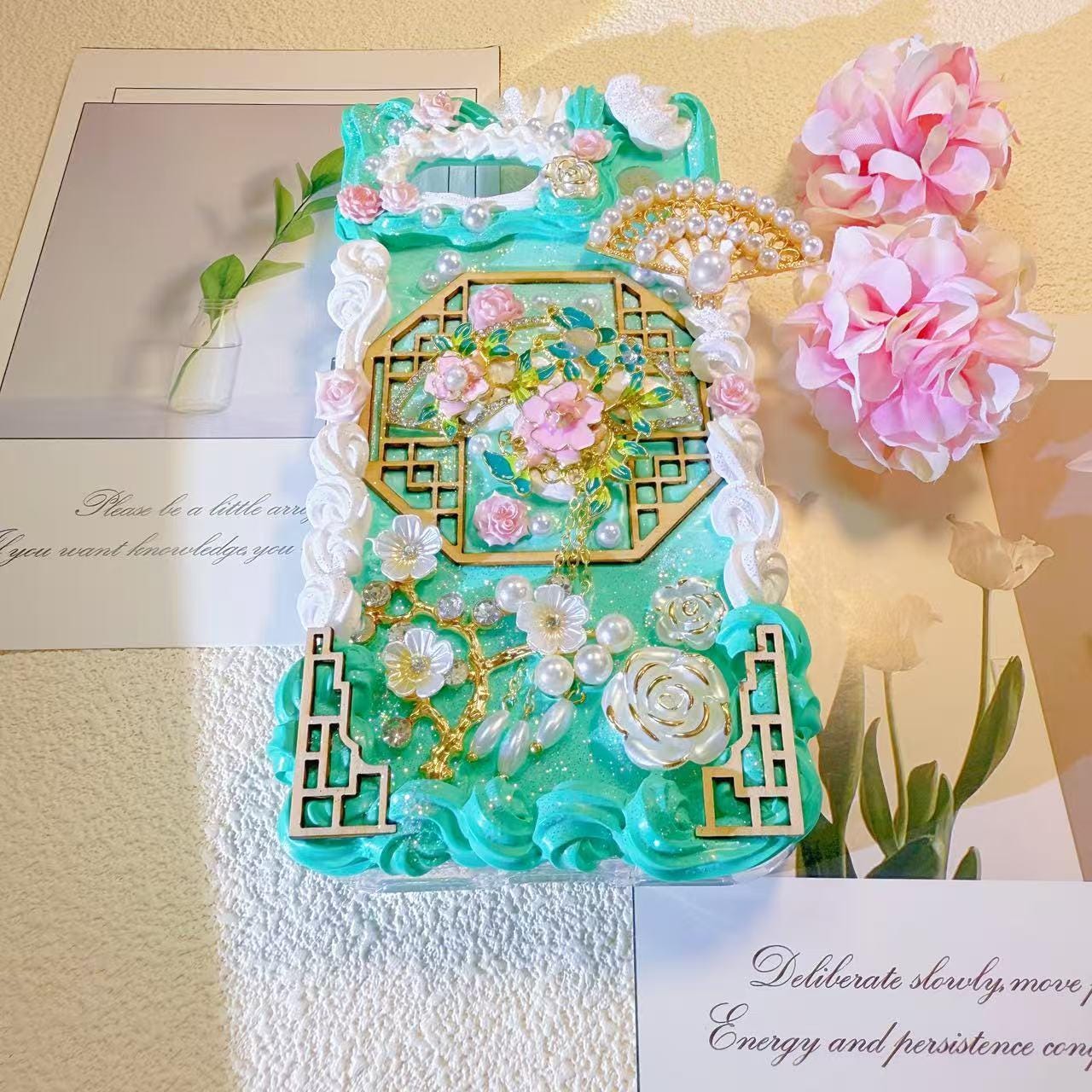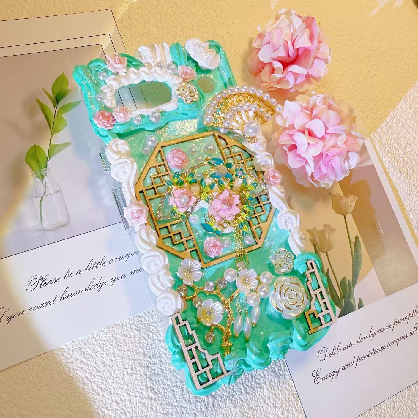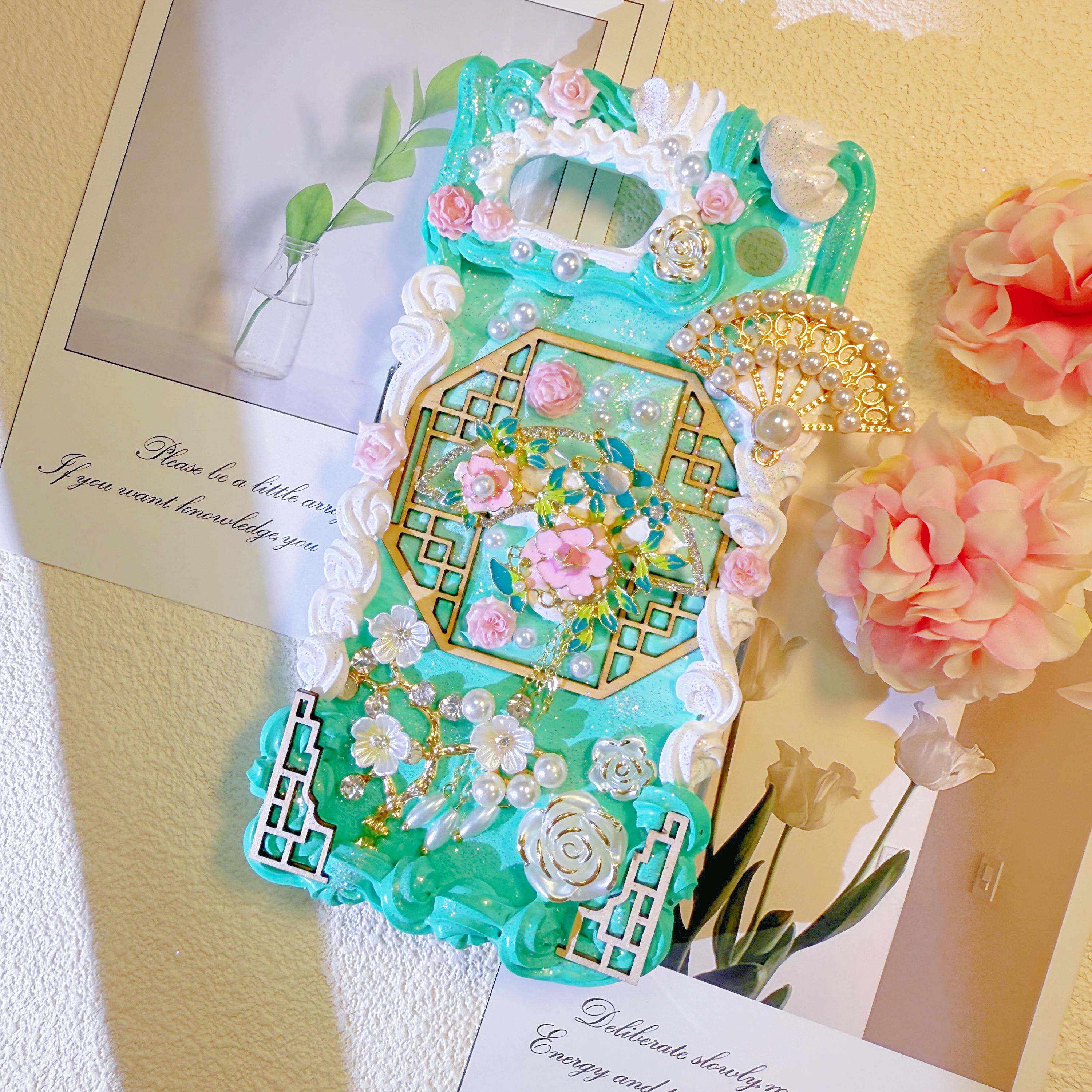 Handmade cream glue phone case, fans, elegant Design