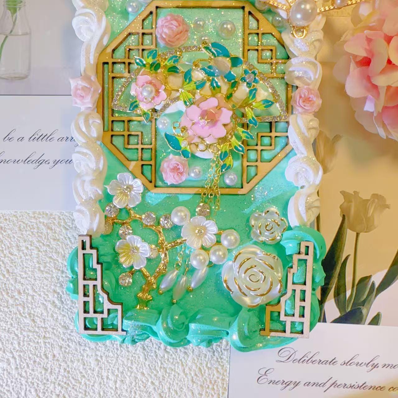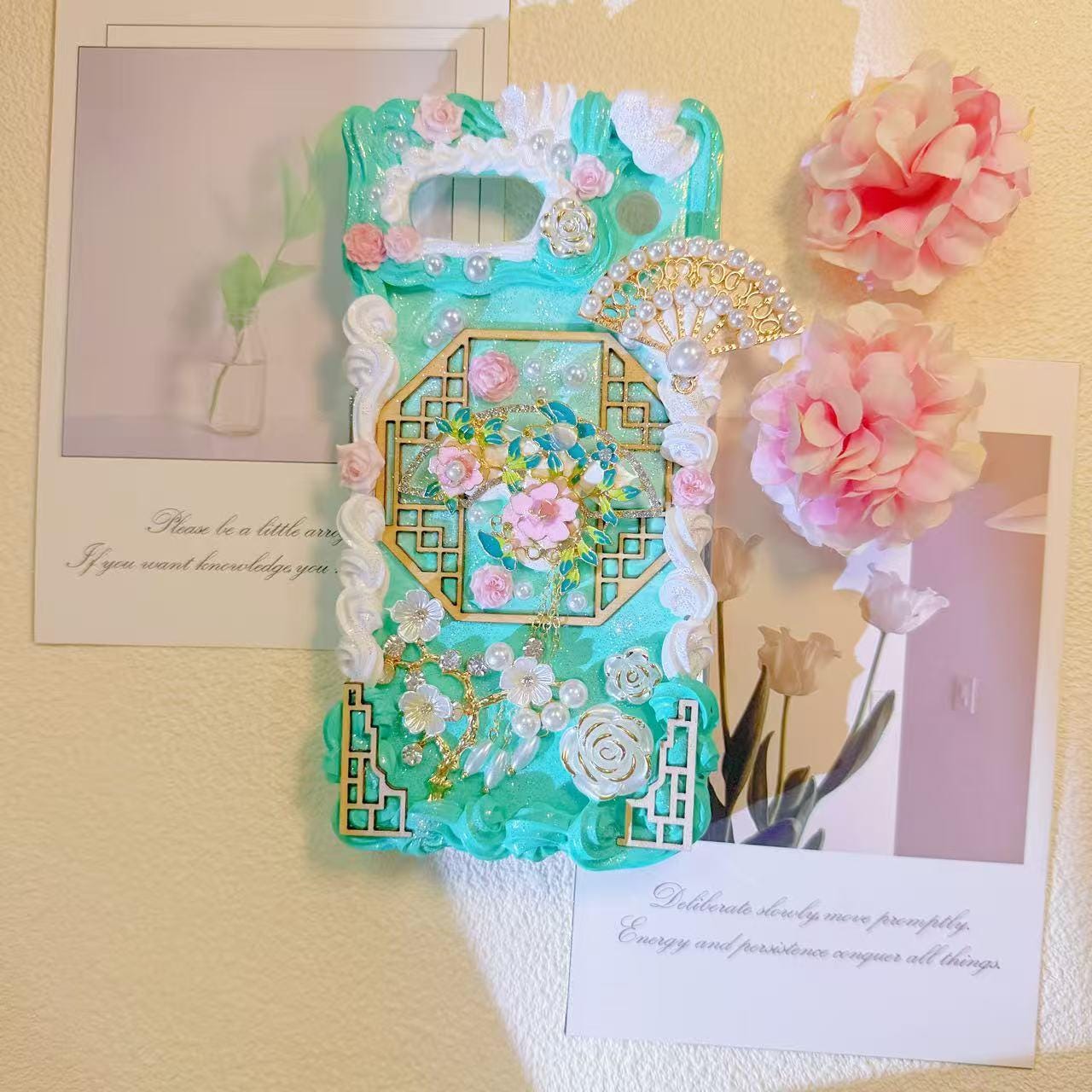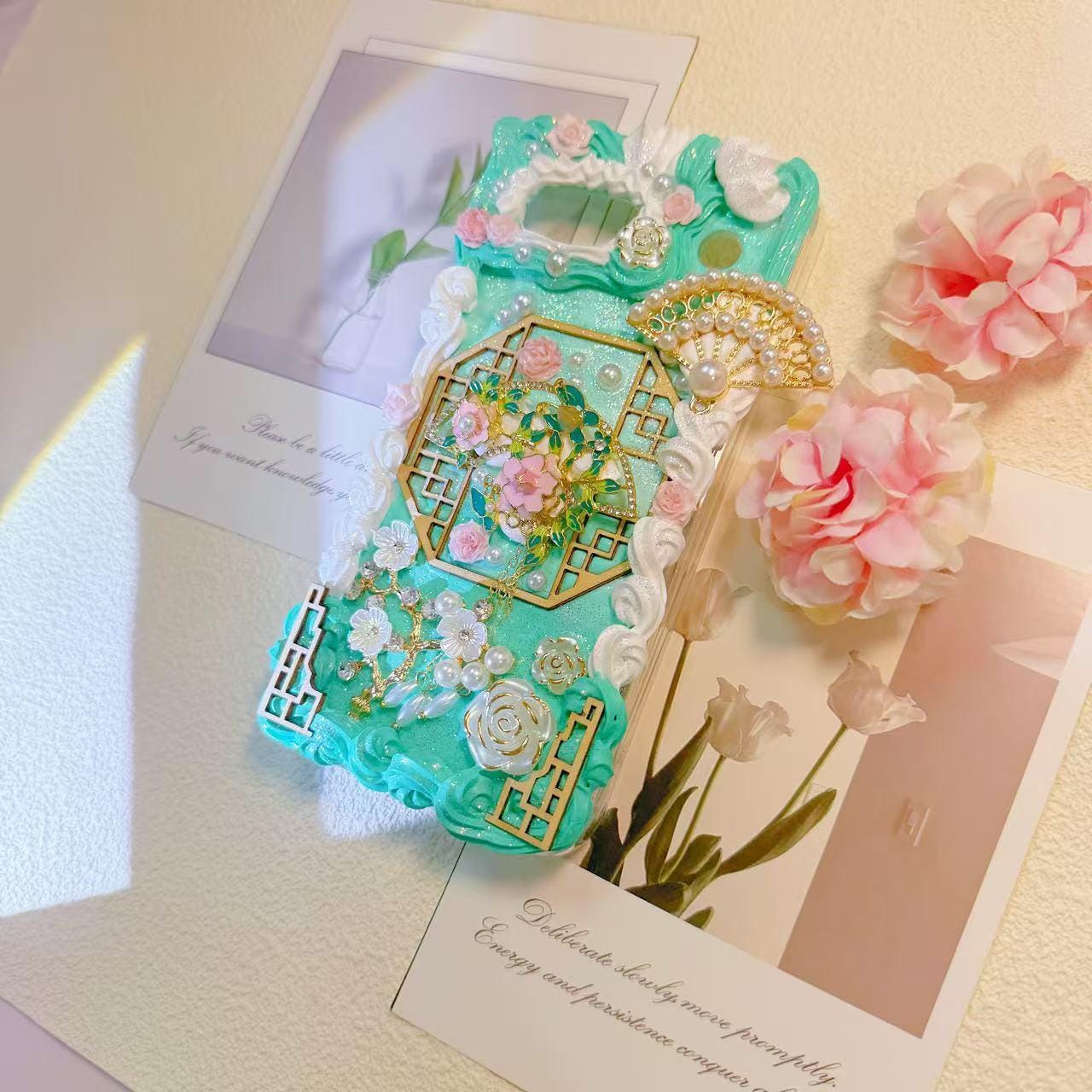 Handmade cream glue phone case, fans, elegant Design
